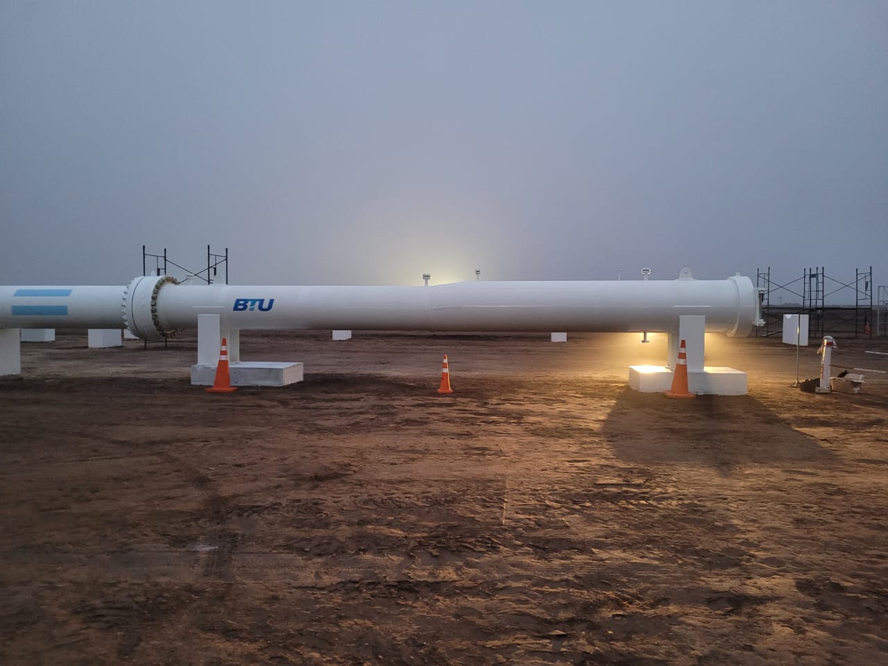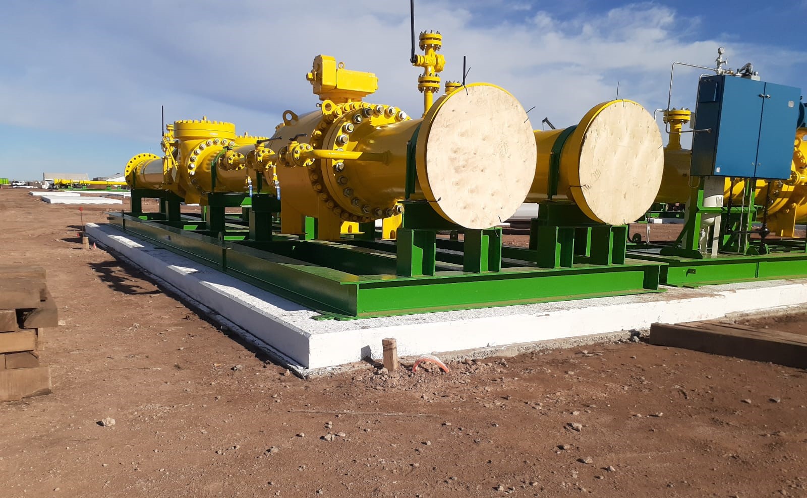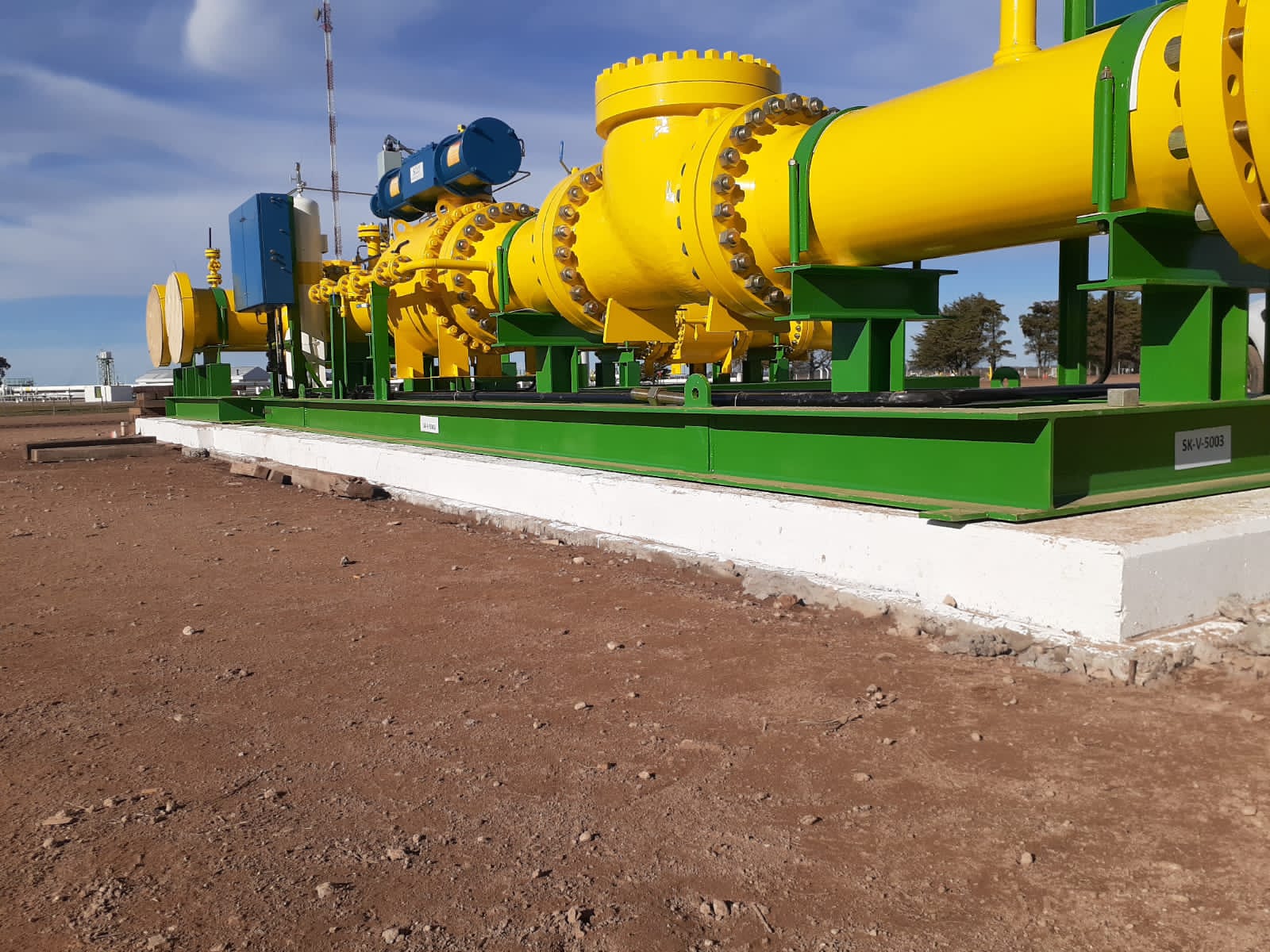 Obra Civil: se realizaron bases para equipos (skid, shelter, etc) y base para soporte de cañerías y válvulas de 36’’ (sleepers). La obra se realizó con el máximo control de calidad en el hormigón, asegurando la trazabilidad de cada elemento estructural. El replanteo se cada elemento se realizó de manera tal de asegurar una tolerancia de 5mm en toda la obra, para esto se utilizaron equipos topográficos certificados y personal altamente calificado.
