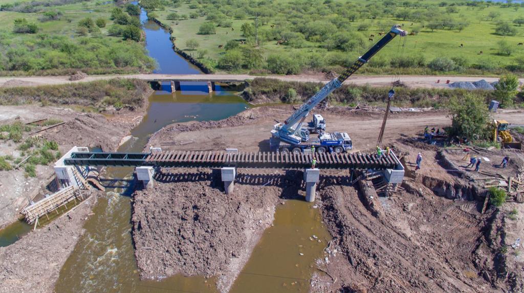 Infraestrucutra: construcción de 2 estribos con sus respectivos muros alas, y 3 pilas de HºAº compuesta por pilotes columnas, cabezales y vigas dintel.