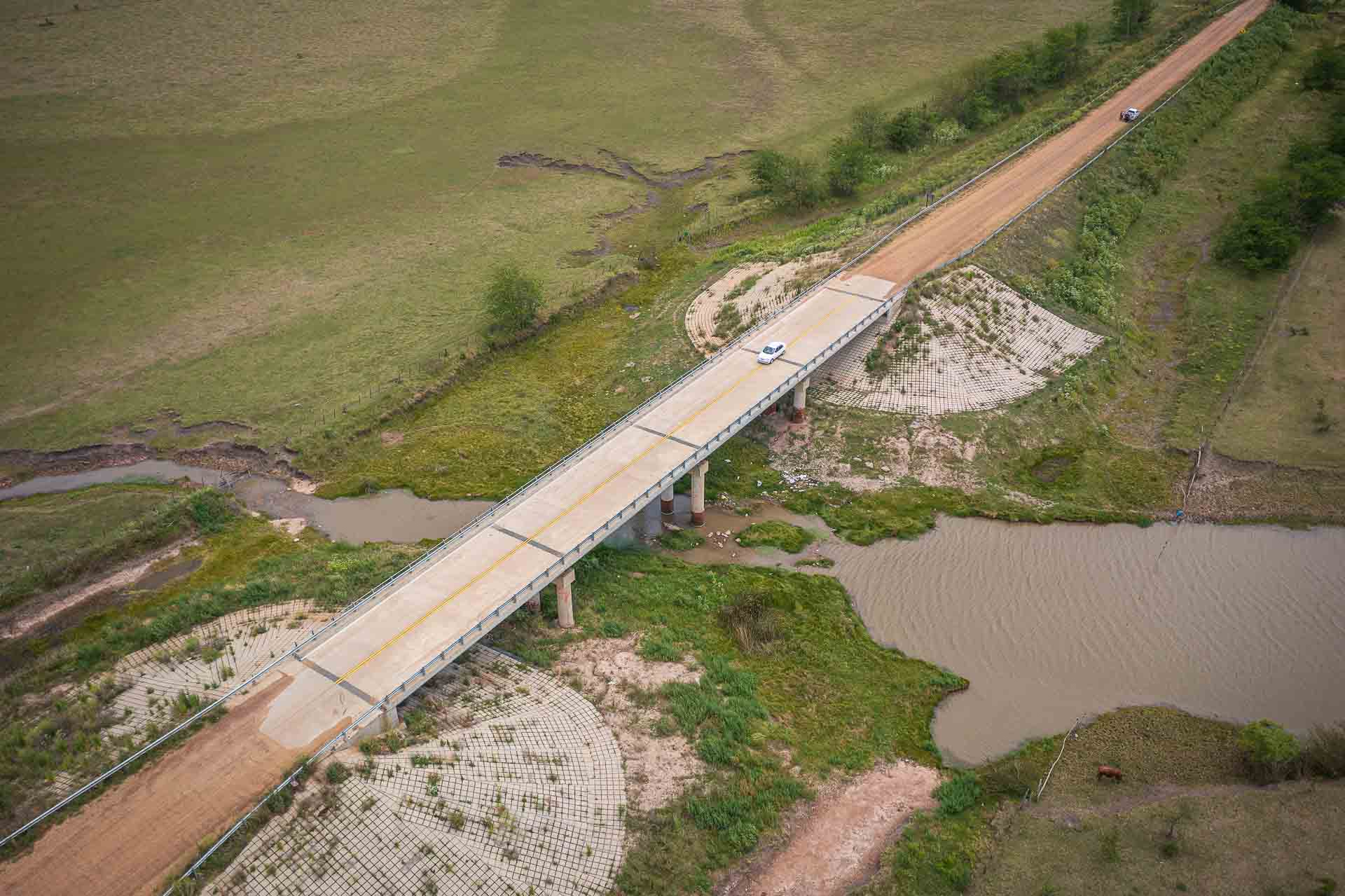 accesos a los puentes a través de calzada de ripio.
